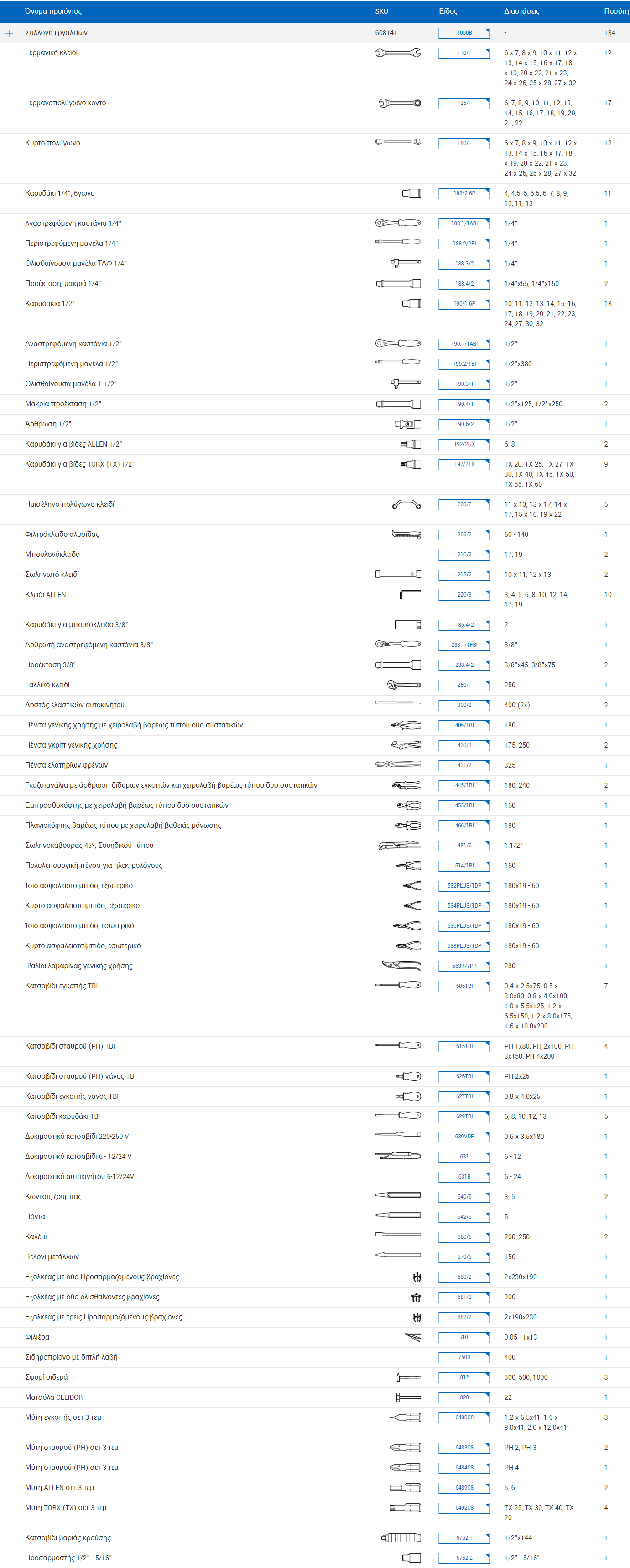 • Η συλλογή προσφέρει όλα τα εργαλεία για μια πλήρη συντήρηση σε συνεργεία αυτοκινήτων ,συνεργεία αγροτικών μηχανημάτων, και συντήρηση στην βιομηχανία